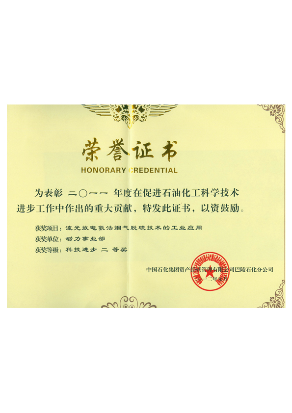 2011年度中國石化巴陵石化科技進(jìn)步二等獎(jiǎng)