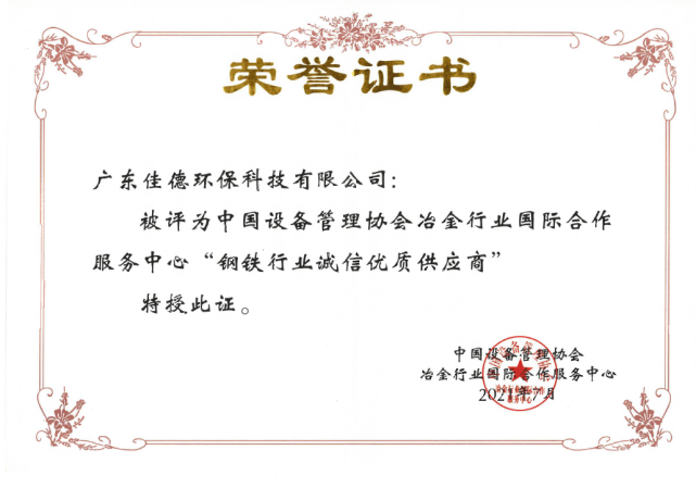 2021年7月13-15日,由中國設(shè)備管理協(xié)會主辦的“中國鋼鐵產(chǎn)業(yè)鏈新技術(shù)新裝備展洽會——中國鋼鐵低碳智能高質(zhì)量發(fā)展峰會”在山東日照召開,佳德環(huán)保作為鋼鐵行業(yè)長期合作伙伴,憑借長期堅持為客戶提供一流技術(shù)、一流質(zhì)量和一流服務(wù)的企業(yè)經(jīng)營理念所積