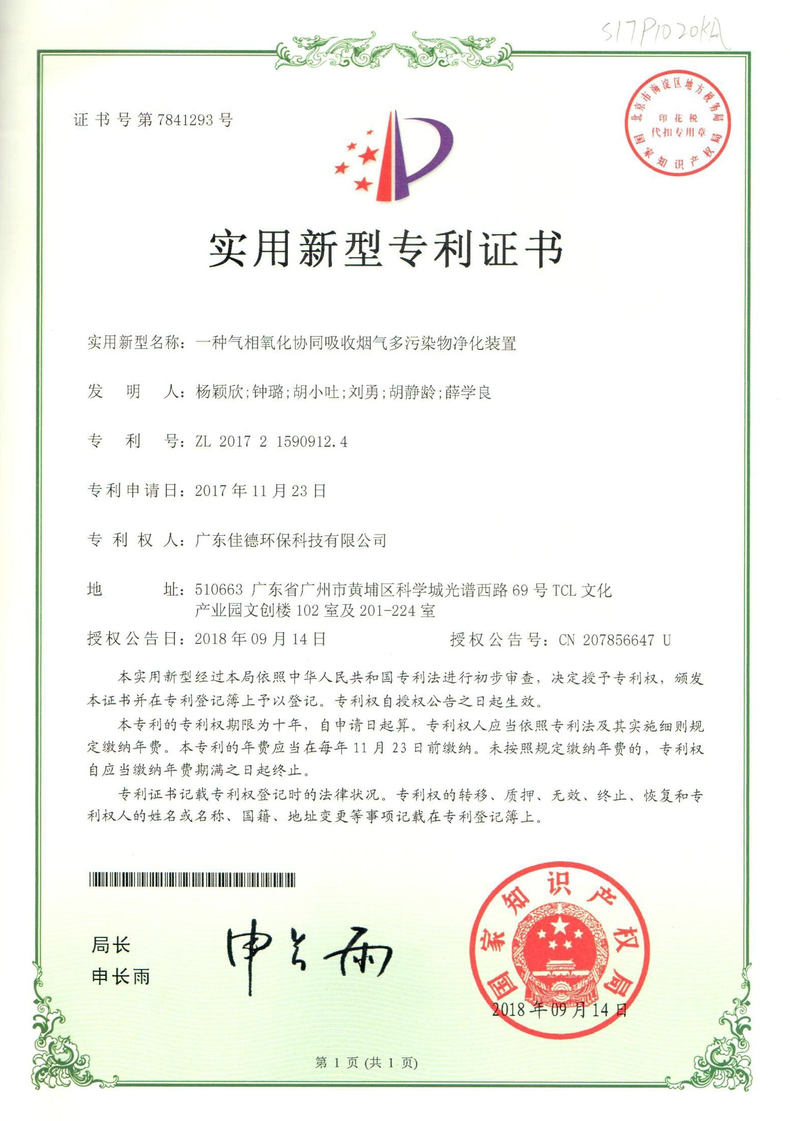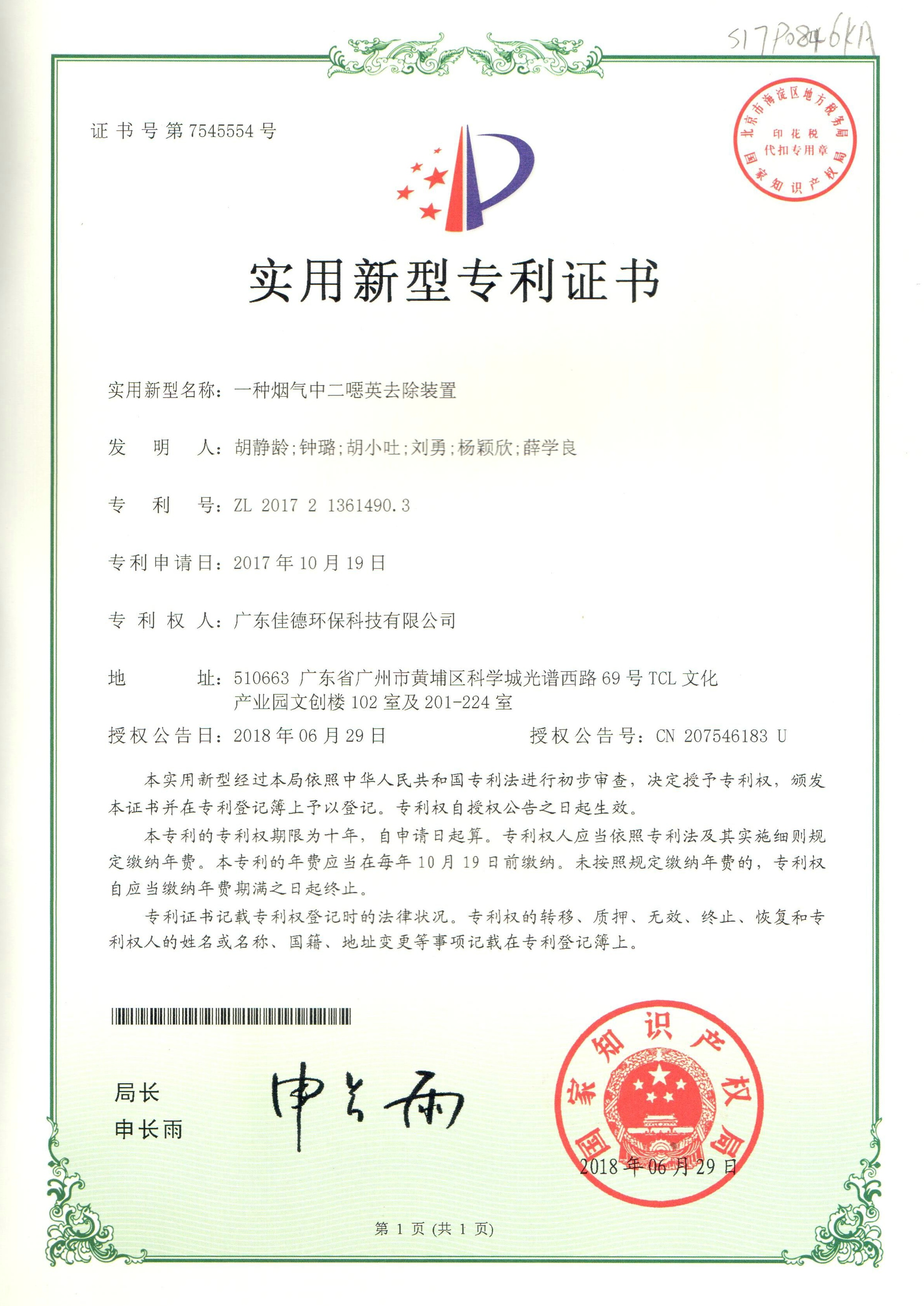 一種煙氣中二噁英去除裝置(ZL201721361490.3)