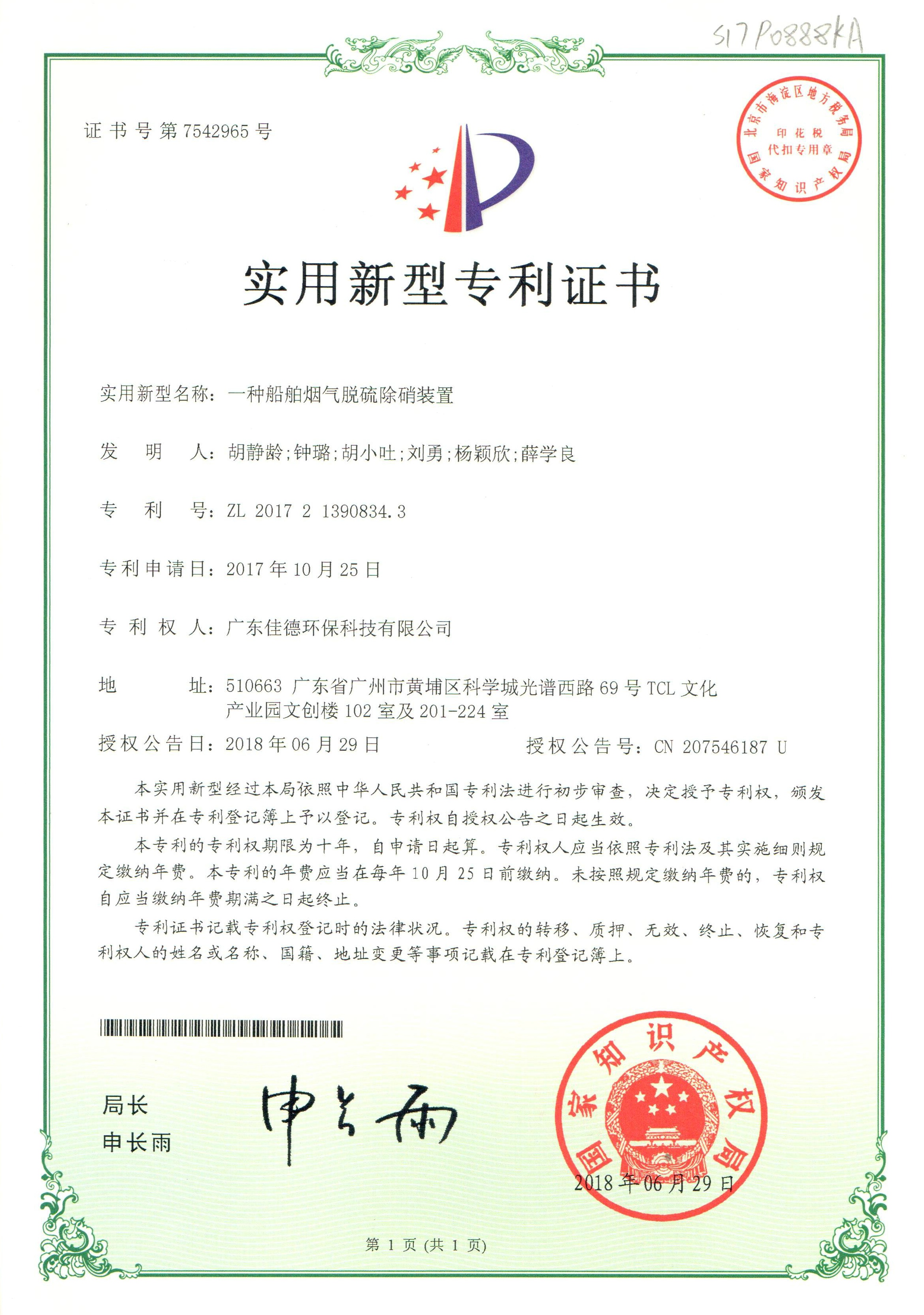 一種船舶煙氣脫硫除硝裝置(ZL201721390834.3)
