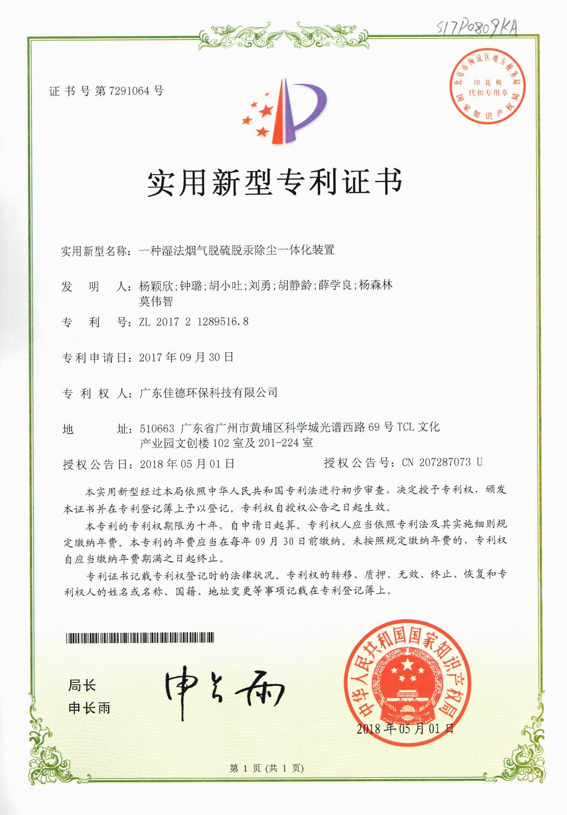 一種濕法煙氣脫硫脫汞除塵一體化裝置(ZL201721289516....