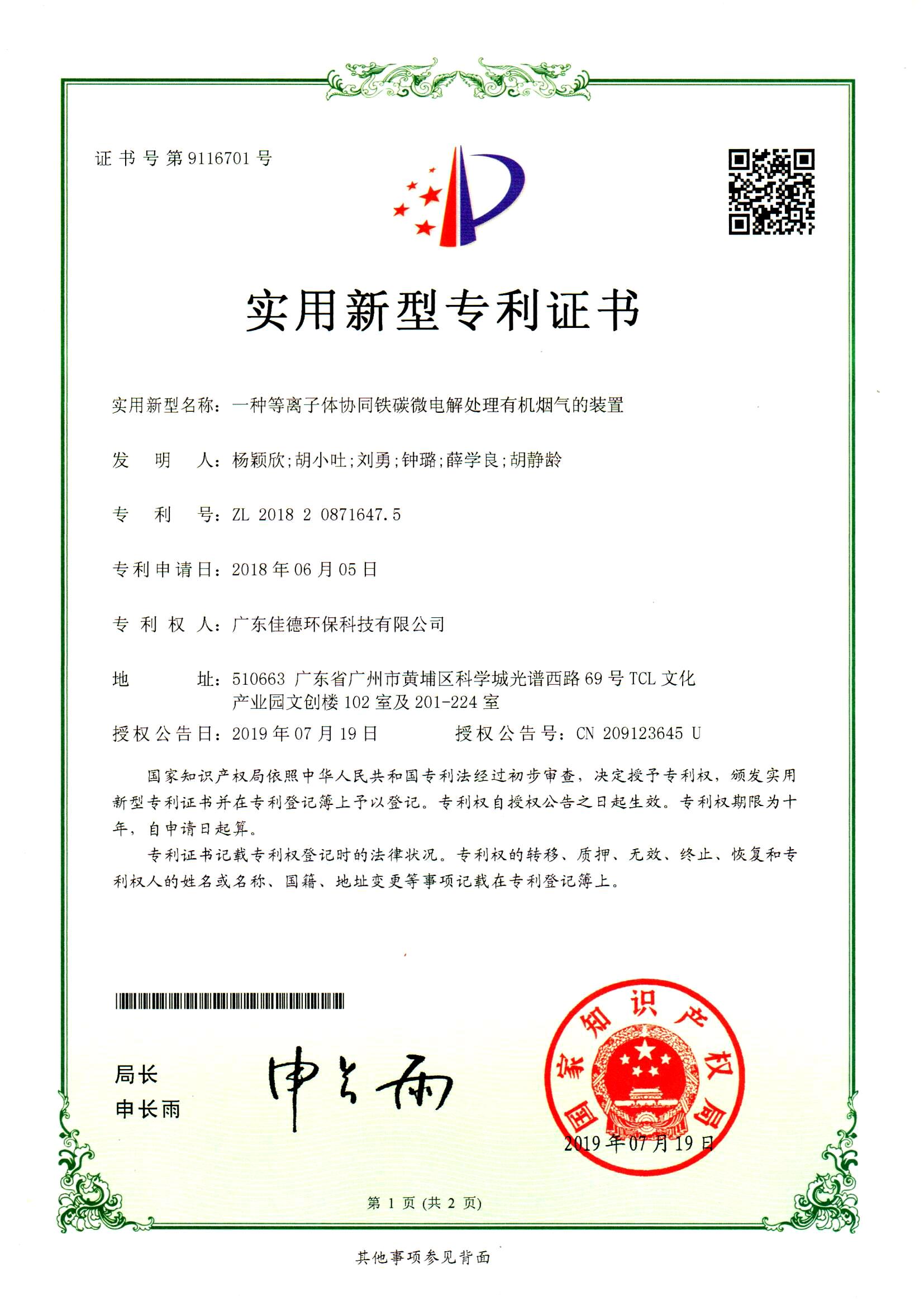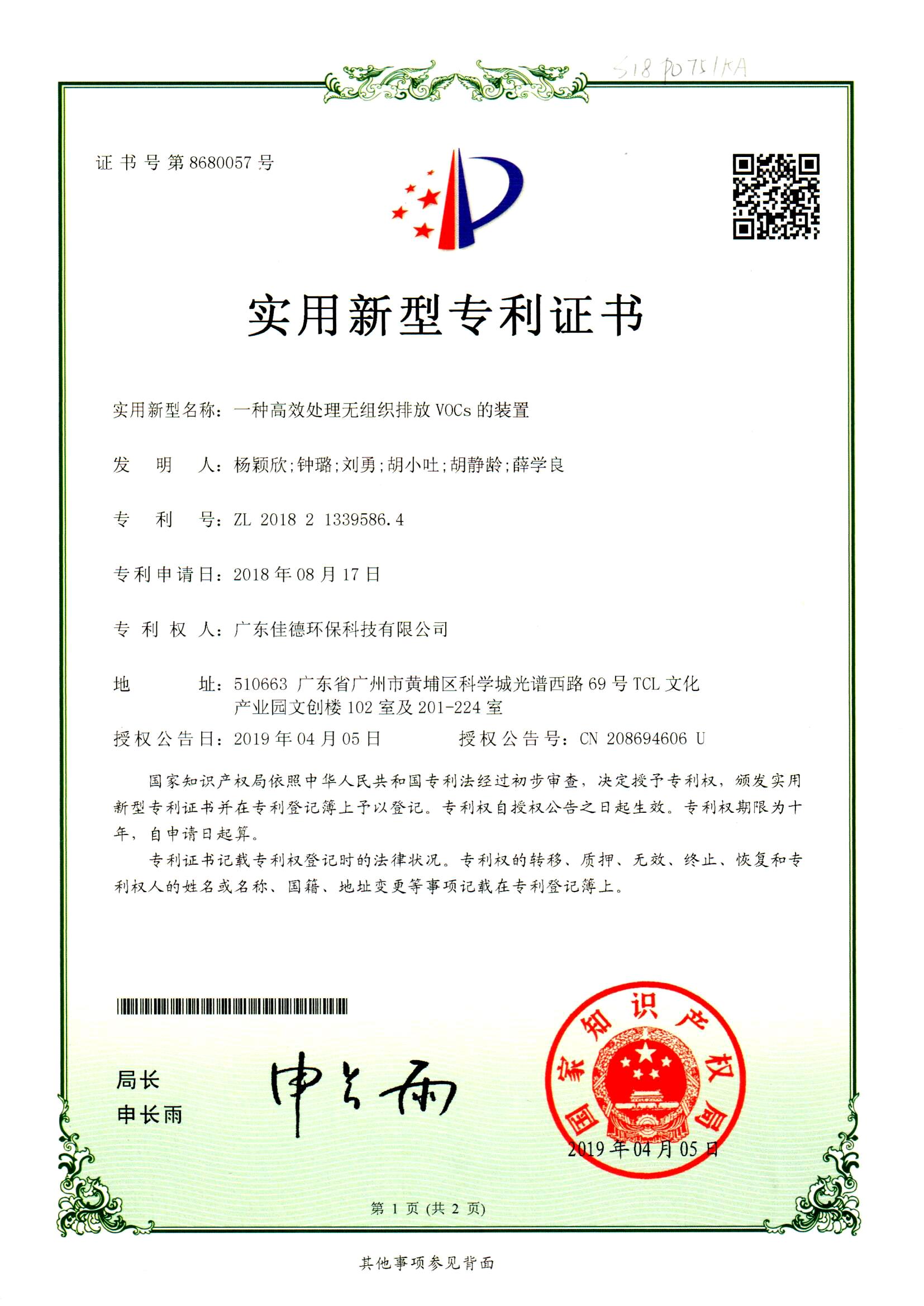 一種高效處理無組織排放VOCs的裝置(ZL201821339586.4)...