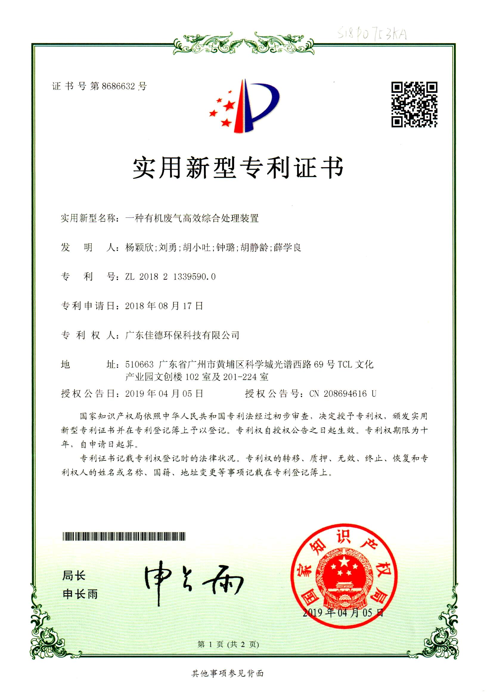 一種有機(jī)廢氣高效綜合處理裝置(ZL201821339590.0)