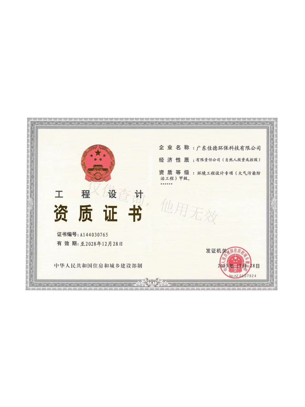 環(huán)境工程專項(xiàng)甲級(jí)證書